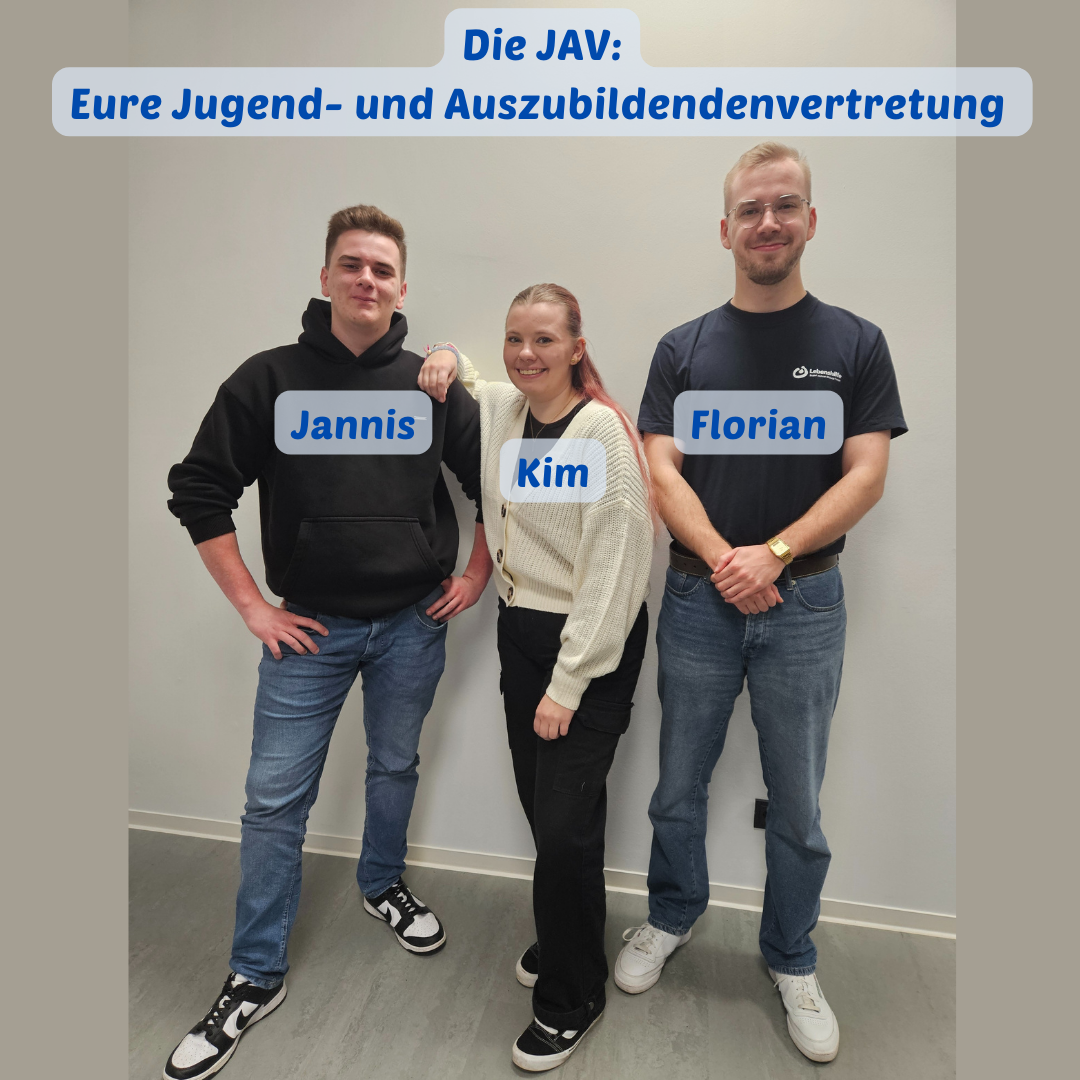Bei Fragen und sonstigen Anliegen zu betrieblichen Angelegenheiten stehen Euch die gewählten JAV-Mitglieder Jannis, Kim und Florian zur zur Verfügung.